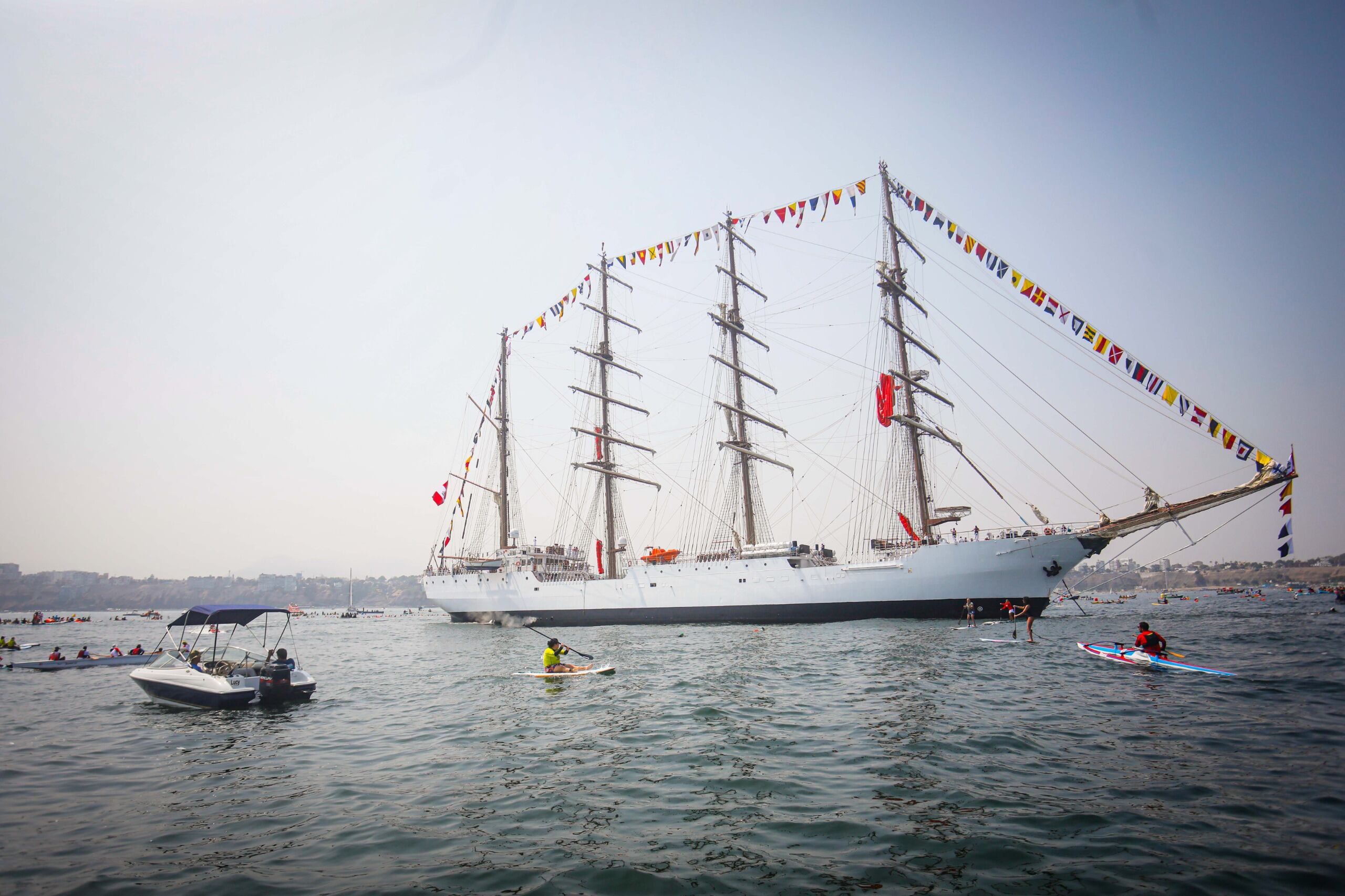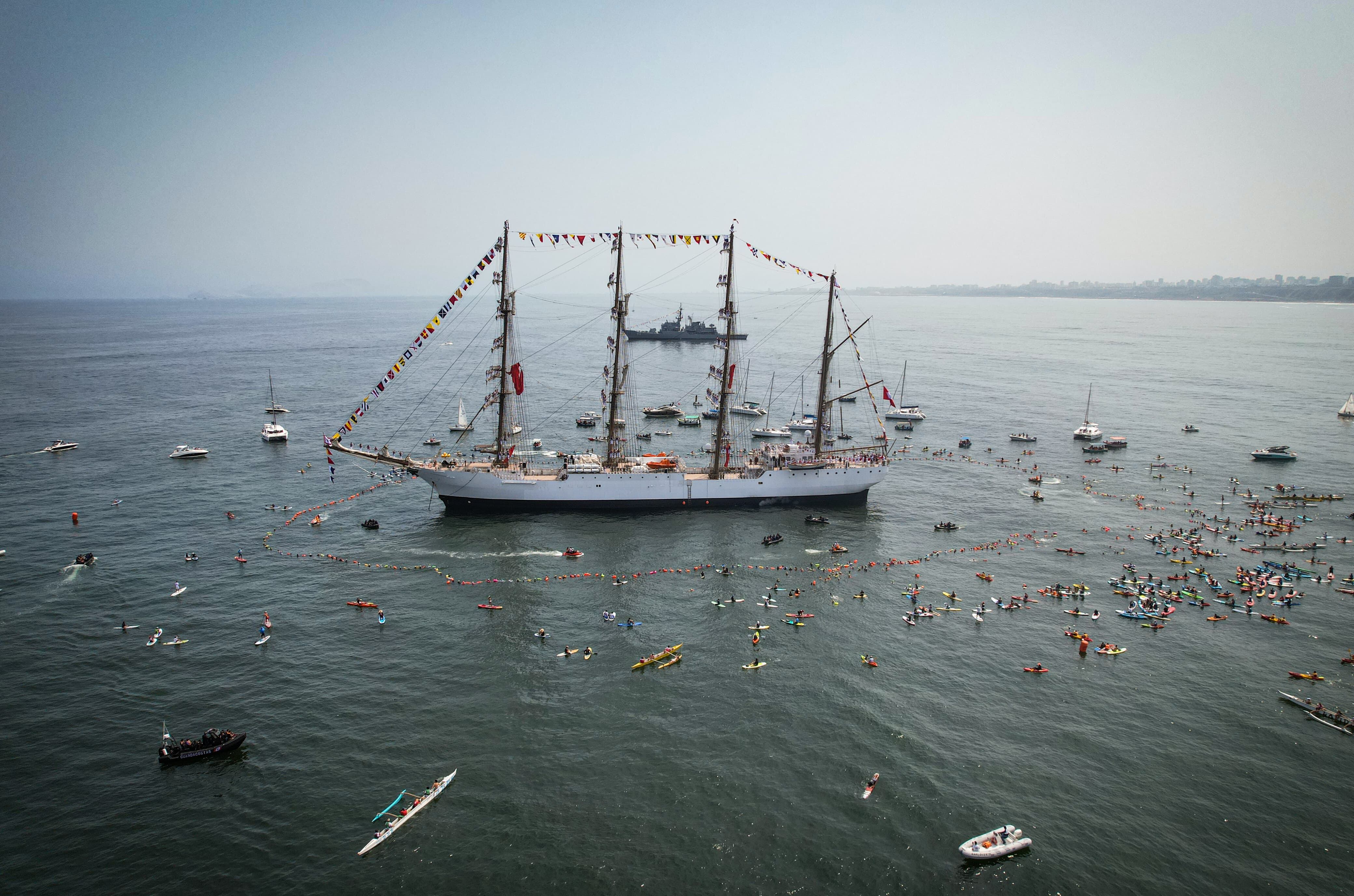 Momento histórico en Chorrillos. El Buque escuela B.A.P. Unión, retornó a territorio nacional tras recorrer 36,400 millas náuticas y 317 días de viaje. Este sábado, la nave embajadora de nuestro país ancló en Chorrillos para recibir merecidos homenajes como el ‘Círculo de la Unión’, con la participación de integrantes de las asociaciones de deportes náuticos, la Marina de Guerra del Perú y la Municipalidad de Chorrillos.