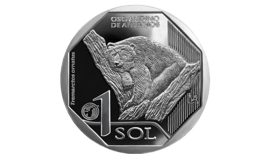 La nueva moneda del BCR muestra al oso andino de anteojos descansando sobre un tronco. Asimismo, también se aprecia su nombre científico ‘Tremarctos ornatus’, un diseño geométrico compuesto por líneas verticales, la marca de la Casa Nacional de la Moneda y la denominación en número y el nombre de la unidad monetaria.