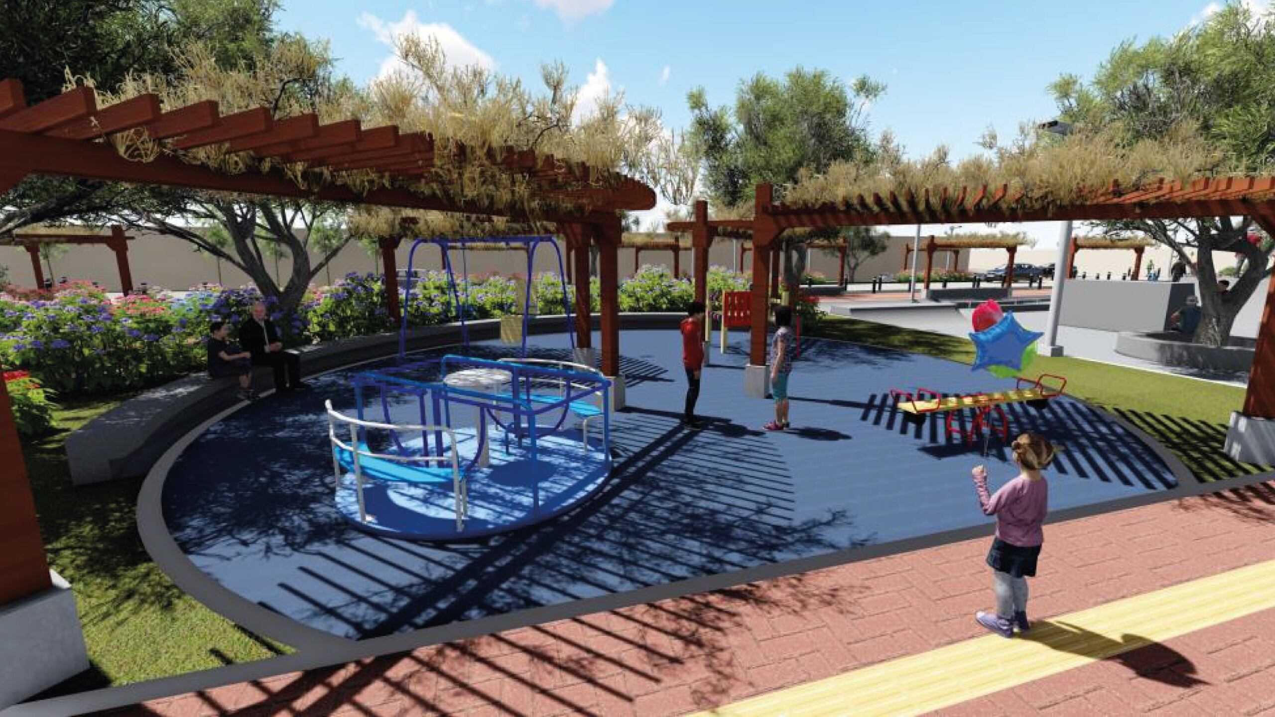 Asimismo, la obra incluye la construcción de una ciclovía de pavimento flexible, un skatepark, equipamiento para gimnasio y juegos infantiles con pisos de caucho, además de una pileta con espejo de agua.