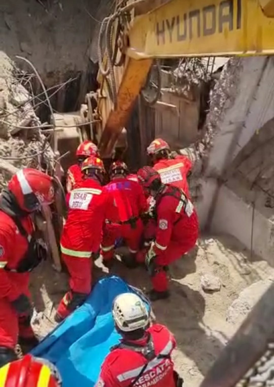 “Hemos encontrado a una persona en el pozo de ascensores, a 2.40 metros de profundidad a nivel del suelo. El trabajo se hizo con maquinaria pesada y también trabajo manual entre bomberos y policías”, precisó el subrigadier mayor del Cuerpo General de Bomberos Voluntarios del Perú, Claudio Sáenz. El rescate se registró a la 1:30 de la tarde de ayer.