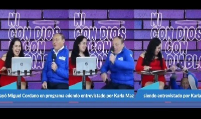 Miguel Cordano conversaba amenamente con la conductora Karla Mazzini del programa de Nacional TV Perú. Mientras ambos reían, de pronto, el candidato perdió el control de su asiento y cayó de espaldas ante la mirada atónita de la presentadora que no tuvo reacción alguna y solo miró cómo el entrevistado caía.