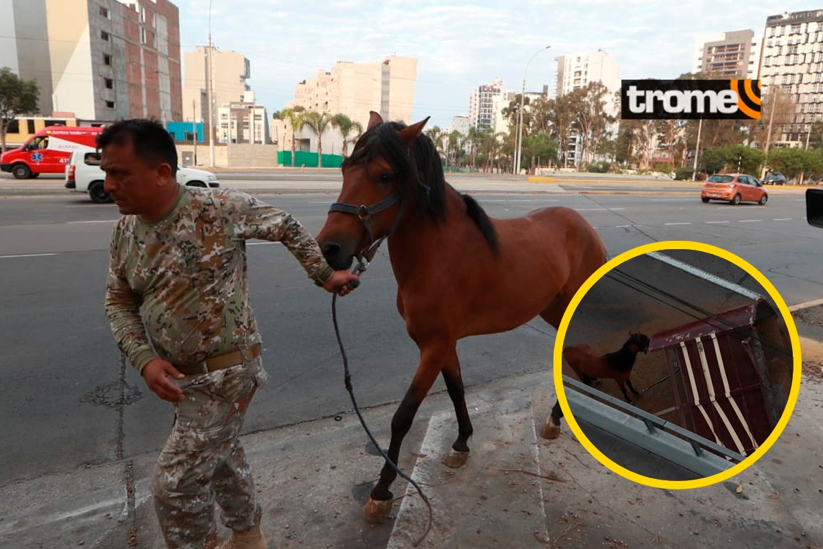 Dos caballos que eran trasladados en una carroza terminaron deambulando en la Vía Expresa, de Barranco. Los animales terminaron con cortes en las piernas y heridas ante el impacto provocado.