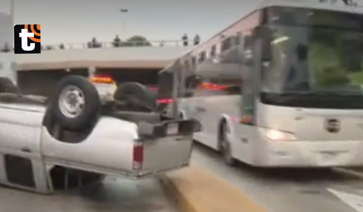 El vehículo oficial, de placa EGO 836, terminó con las llantas hacia arriba tras un presunto despiste ocurrido dentro de la vía segregada. La escena generó alarma entre transeúntes y pasajeros que se encontraban a bordo de los buses detenidos por el siniestro.