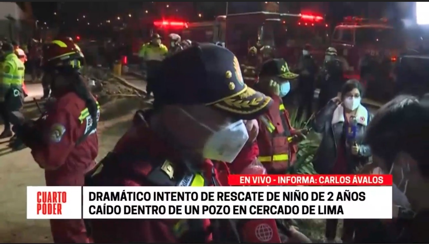 El comandante de los bomberos Mario Casaretto informó que el pozo en el que cayó el niño de dos años en el parque Roma del Cercado de Lima podría tener hasta 110 metros de profundidad y no 40, como se manifestó en un primer momento.