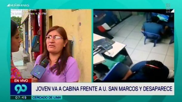 Una madre denunció la desaparición de su hijo frente a la universidad de San Marcos. El estudiante de antropología de 23 años fue visto por última vez en una cabina de internet el miércoles 14 de febrero.