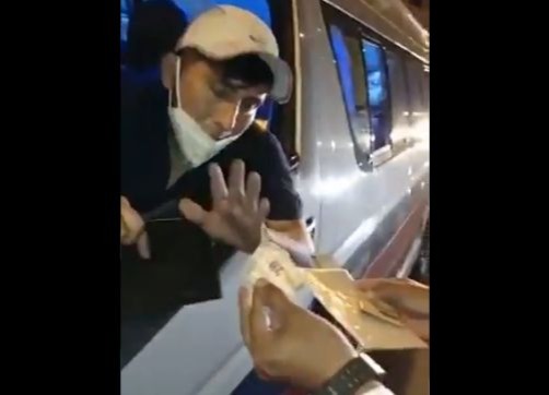 Al entregar sus documentos al fiscalizador, el conductor Guerra Zamora también entregó un billete de 20 soles. Ante esta situación, García Delgado rechazó la acción del infractor y solicitó a la fiscalizadora Vanesa Melo Corimanya que grabe la situación, además del apoyo policial que se encontraba en el lugar.