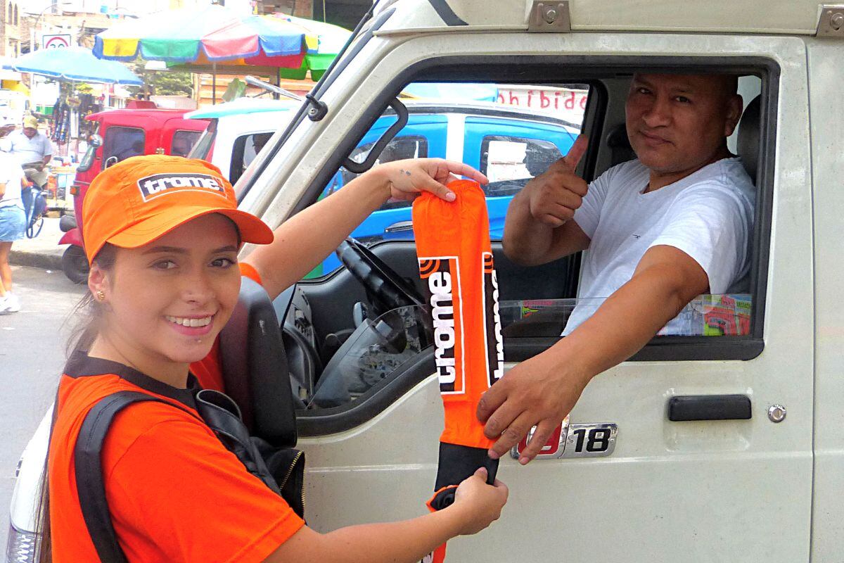 Hace unos días, un equipo de promociones llegó también hasta el cruce de los jirones Próceres con Hipólito Unanue, en el distrito de La Victoria, donde obsequió las mangas a conductores de taxi, bus, combi y colectivo.
