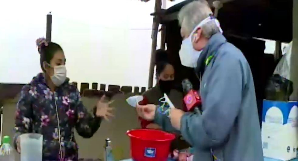 “Yo estoy viendo tu mascarilla que ya está deteriorada, incluso está un poco gastada, prácticamente ya no te está protegiendo”, dice el periodista visiblemente preocupado por una de las mujeres, mientras preparaba el almuerzo para los vecinos de Pamplona.