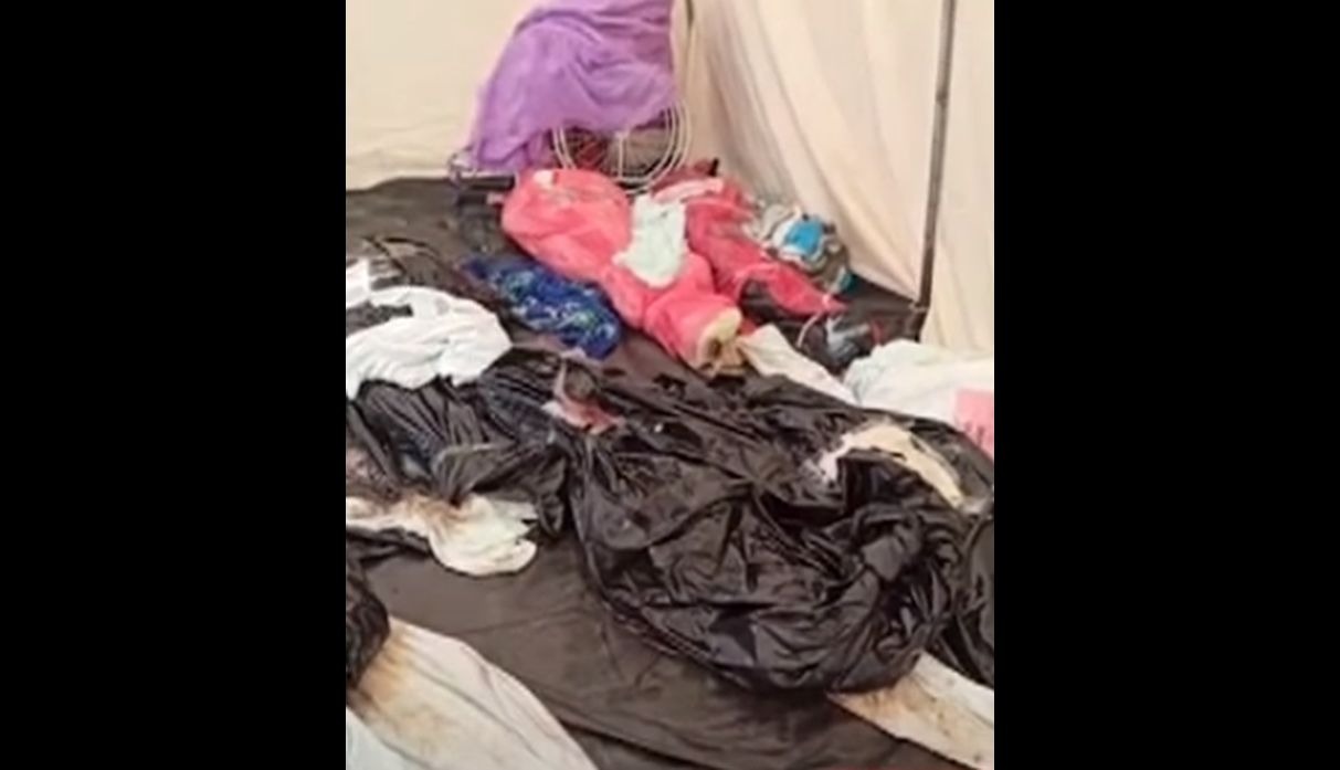 En imágenes difundidas por Buenos Días Perú y grabadas por personal médico del nosocomio ubicado en el Cercado de Lima, se ve varios cuerpos, al parecer descompuestos, envueltos en bolsas negras, tapados con colchas y amontonados al interior de una carpa, que no cumple con las mínimas medidas de bioseguridad.
