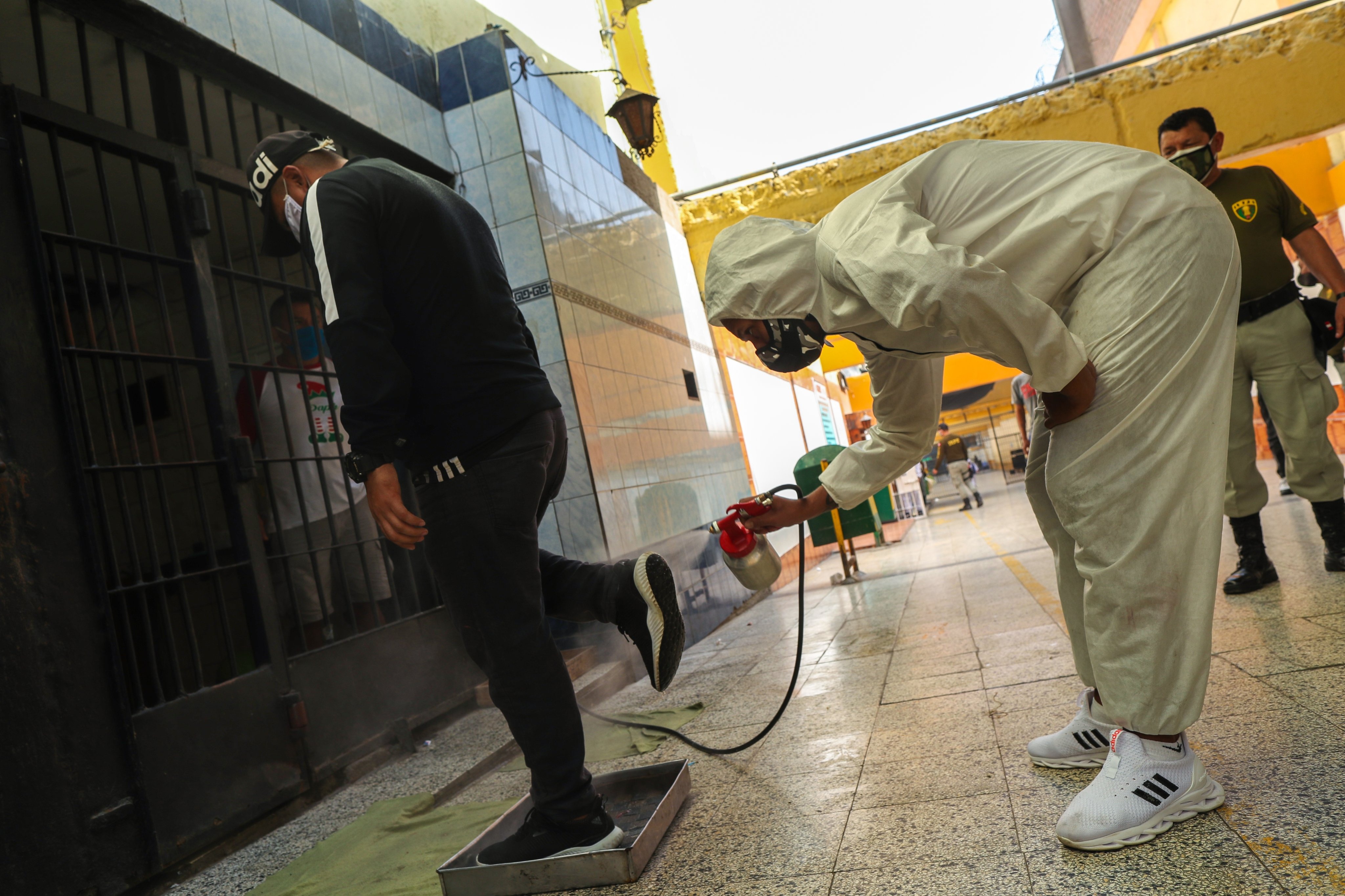 Por ejemplo, las personas que deseen acceder a los pabellones se les toma la temperatura con termómetros infrarrojos y se les desinfecta. Incluso, los agentes del INPE pasan por ese proceso. Los encargados de esa labor son los delegados.
