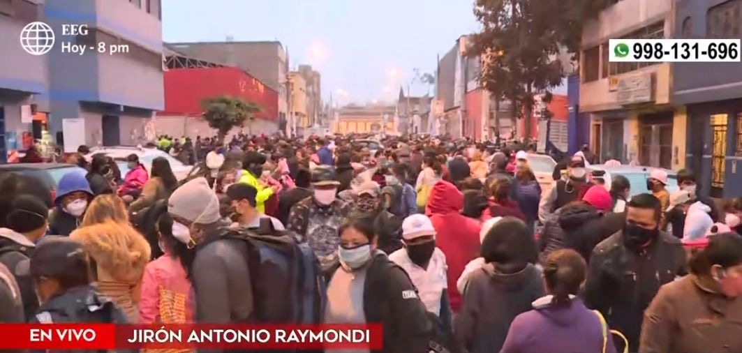 ESCENAS DE TERROR. En el día 82 del estado de emergencia por el avance del coronavirus en el Perú, cientos de ambulantes ocupan desde esta madrugada varias cuadras del jirón Antonio Raymondi, en La Victoria. Imágenes difundidas por América Noticias muestran conglomeración de personas lo que constituye un peligro como factor de contagio de COVID-19. El número de vendedores es mayor al reportado desde hace semanas.