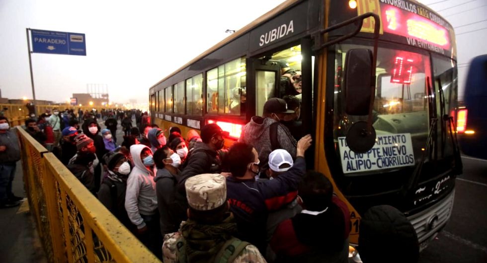 Caos y aglomeraciones. Este martes 23 de junio, en el día 100 del estado de emergencia decretado para frenar la propagación del coronavirus en el Perú, las empresas de transporte urbano de los Gremios de Lima y Callao vienen acatando un paro en reclamo por un subsidio del Estado que les permita afrontar la crisis desatada por la pandemia.