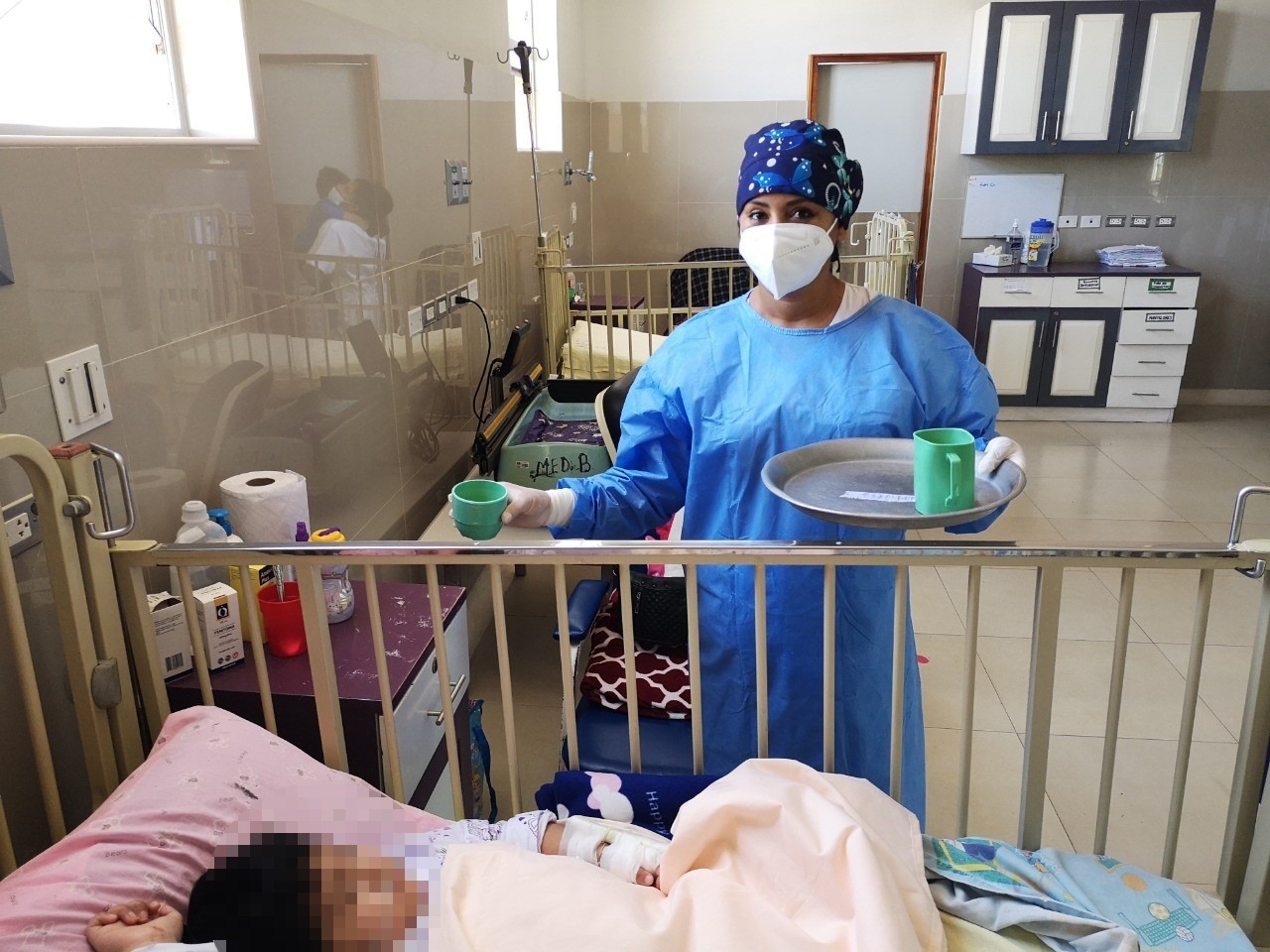 Cerdeña es madre de tres niños y todos los días se despierta a las 4:30 a.m. para preparar el desayuno, loncheras y el almuerzo de sus hijos. Luego se alista y desde San Juan de Miraflores se dirige al centro pediátrico. Ella llega a las 7:30 a.m. donde tiene que atender a sus otros hijos postizos: los pequeños pacientes. Les entrega su desayuno, leche, fórmulas, el almuerzo y la cena. Está pendiente del horario de los alimentos que le corresponde a cada menor.