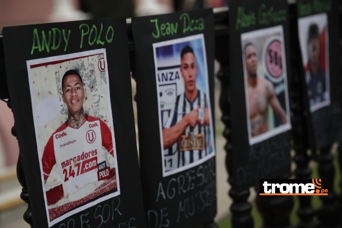 Decenas de mujeres participaron en la manifestación por el Día Internacional de la Eliminación de la Violencia Contra la Mujer y en medio de la marcha, fueron vistas pancartas con los rostros de algunos conocidos futbolistas como Andy Polo y Martín Távara, quienes fueron acusados de maltratar a sus entonces parejas.