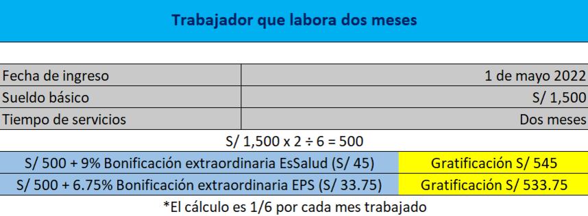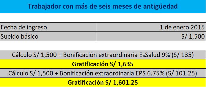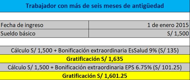 En el caso de trabajadores afiliados a una Empresa Prestadora de Salud (EPS) la bonificación extraordinaria no será el 9%, sino el 6.75% del monto de la gratificación.