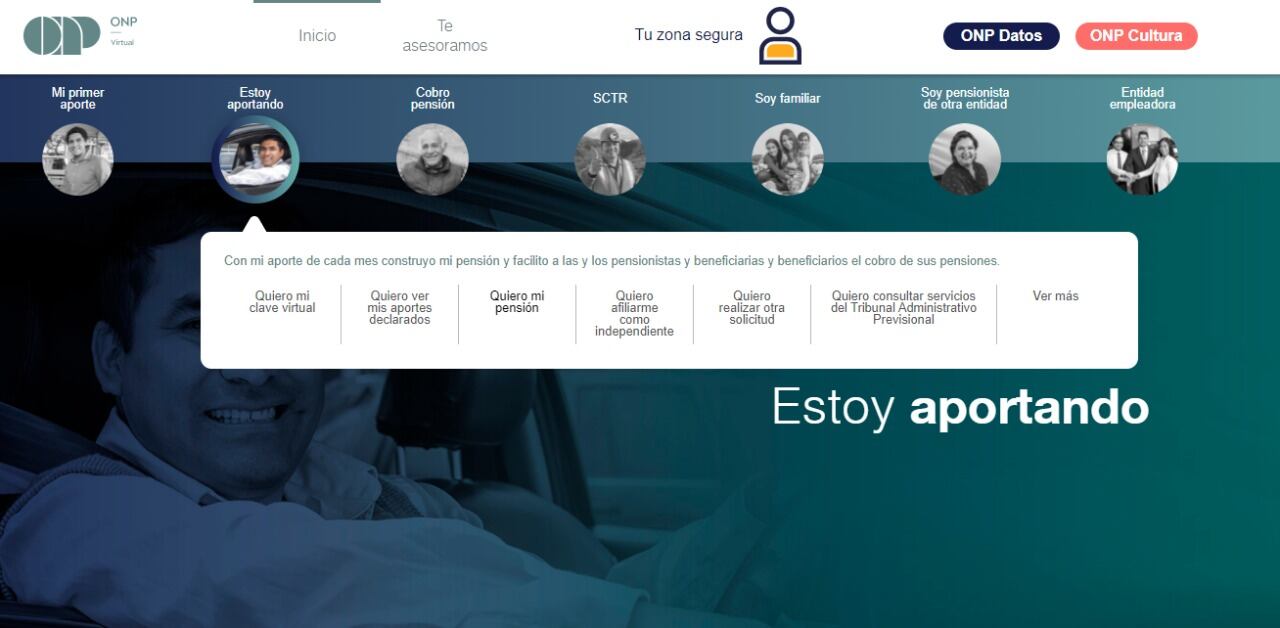 El primer paso para acreditar tus años de aporte al sistema previsional es ingresar a la web de la ONP: onpvirtual.pe, a la cual podrás acceder las 24 horas del día y los siete días de la semana. Una vez en la web deberás elegir la opción “Estoy aportando” y dentro hacer clic en “Quiero mi pensión”.