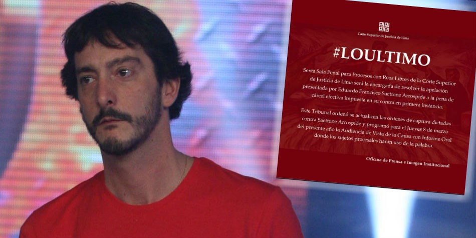 Sin embargo, todo parece indicar que esto tomará un camino distinto. Según informó la Corte Superior de Justicia de Lima a través de su cuenta de Twitter, Edu Saettone apeló "la pena de cárcel efectiva impuesta en su contra en primera instancia".