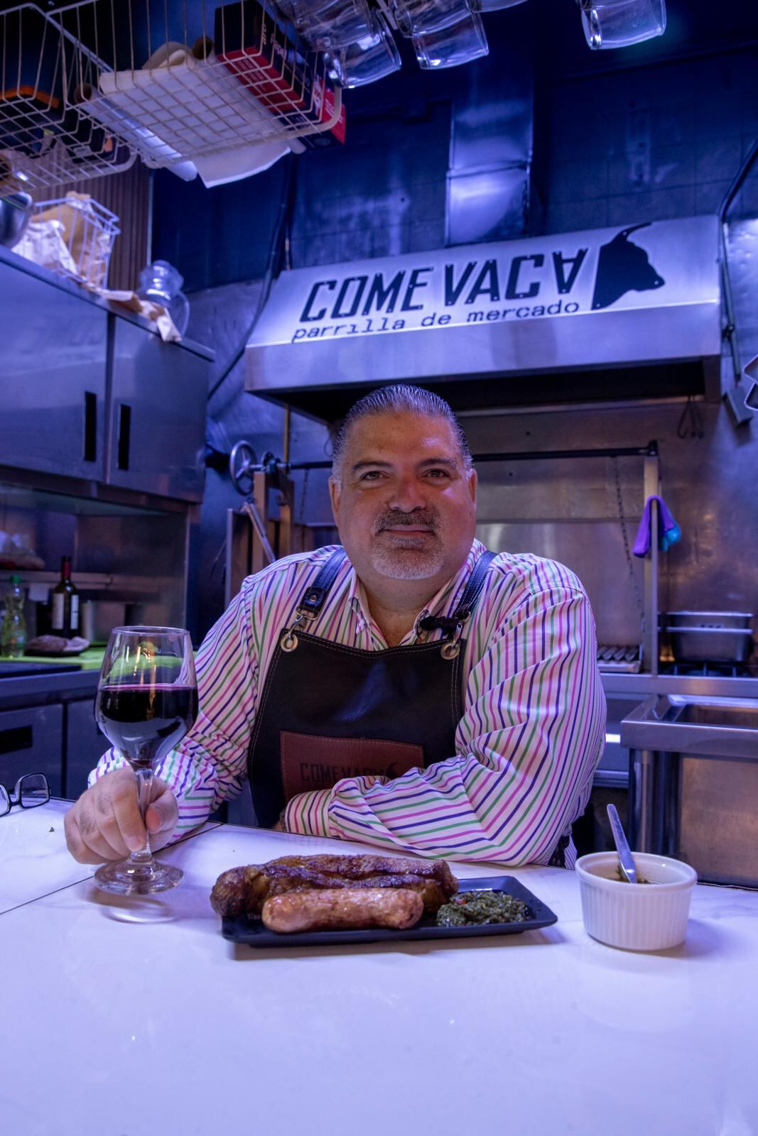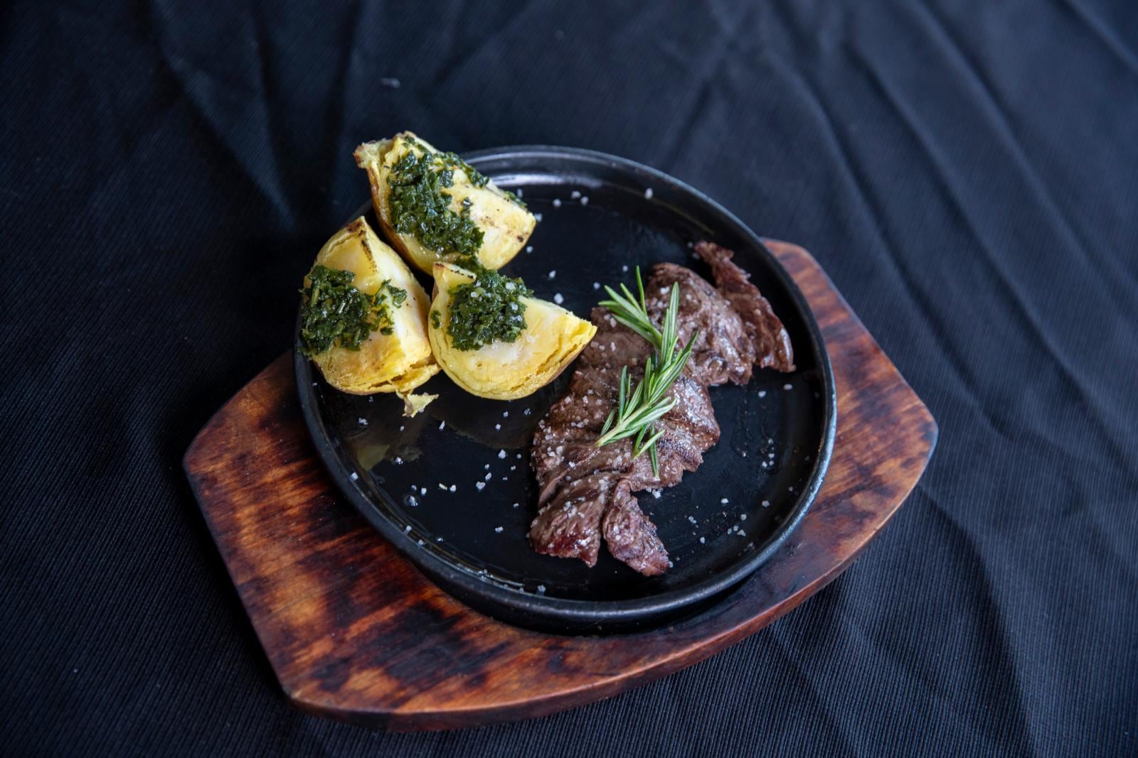 El chef Giancarlo Crauler nos presentó sus platos estrellas: el vacío de 250 gramos hecho a la estaca (esa técnica donde la carne se cocina lento y queda jugosita). Y el mix de chorizos hechos de manera artesanal de la casa, y, por supuesto, su infaltable chimichurri argentino.