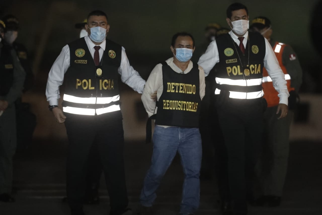 Con una mascarilla, Gregorio Santos fue bajado del avión y le tomaron la temperatura, como parte de los protocolos de seguridad contra el coronavirus. De inmediato fue subido a una camioneta de la policía de requisitorias