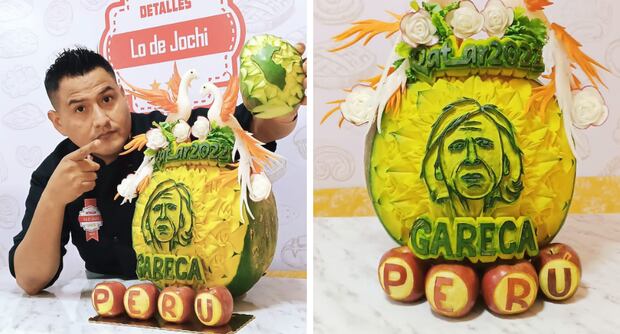 Peruano que se respeta. La emoción por ver a Perú en el Mundial de Qatar 2022 llevó al artista pastelero José Sulca Menacho (36), más conocido como ‘Jochi Garnish’, a tallar los rostros de Gianluca Lapadula y Christian Cueva en dos sandías de gran tamaño y la cara del ‘Tigre’ Gareca en un enorme zapallo. Este vecino de San Juan de Miraflores tardó en promedio nueve horas para retratar los semblantes de los seleccionados y el técnico de la blanquirroja en frutas y verdura.