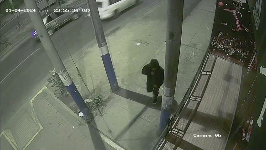 Cámaras de videovigilancia grabaron al sujeto cuando llegaba a pie por dicha vía. Se acercó tranquilamente y del interior de una polera sacó el artefacto explosivo. Luego se fue. A los segundos, el aparato explotó.