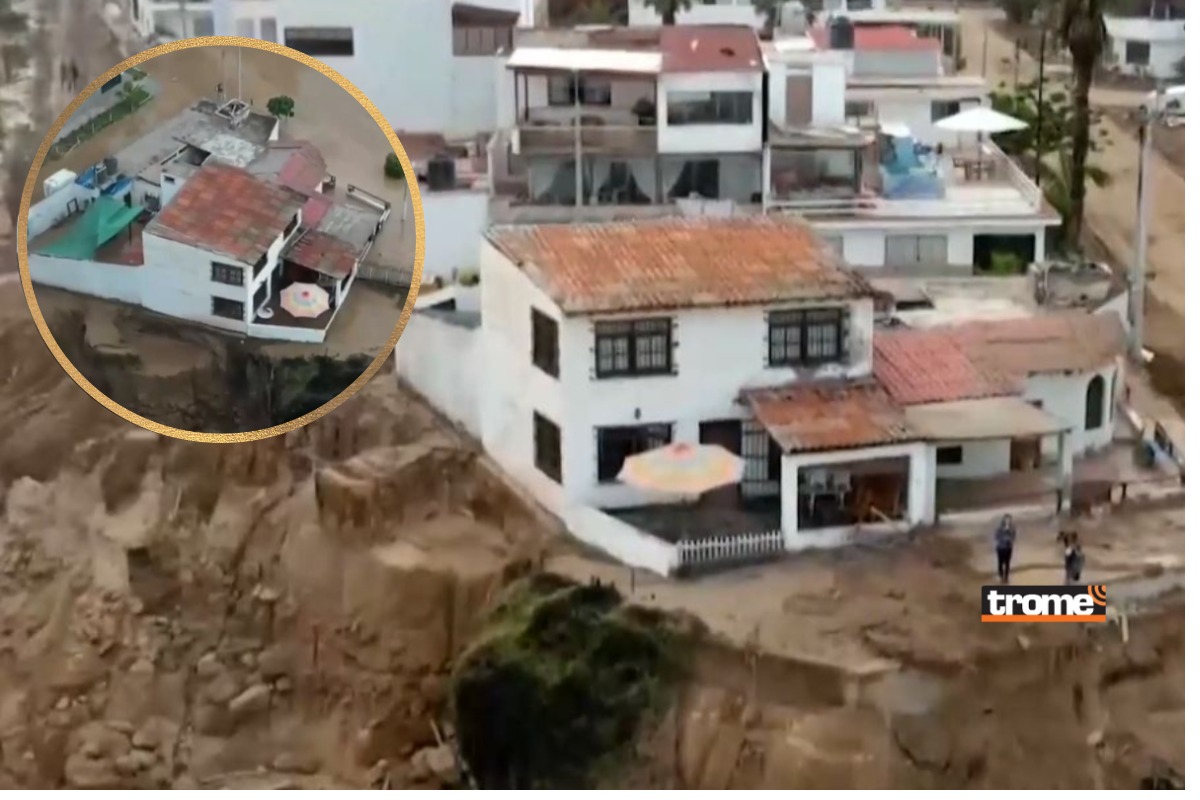 Una amplia casa de playa, que se ubica en la desembocadura del río Lurín, distrito de Punta Hermosa, corre el riesgo de colapsar debido a que la fuerza del huaico arrasó parte de la quebrada, dejando la vivienda al borde del precipicio.