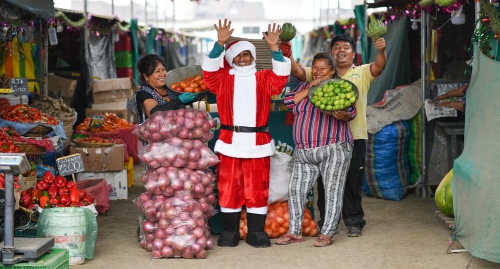 PERUANO QUE SE RESPETA. Este Papá Noel es algo excéntrico. No viaja precisamente en un trineo y tampoco luce esa característica barba blanca y mucho menos vive en el Polo Norte, sino que trabaja como estibador en el mercado de Tierra Prometida. Vestido con el traje rojo y blanco, el huancavelicano David Mendoza Huarcaya (48) es conocido como ‘Estibador Noel’ por sus compañeros. Por estas fechas de fin año, Mendoza se caracteriza como Santa Claus para repartir las verduras y frutas donadas por los propios comerciantes del centro de abastos al comedor popular Nueva Cajamarca del distrito de Villa María del Triunfo.