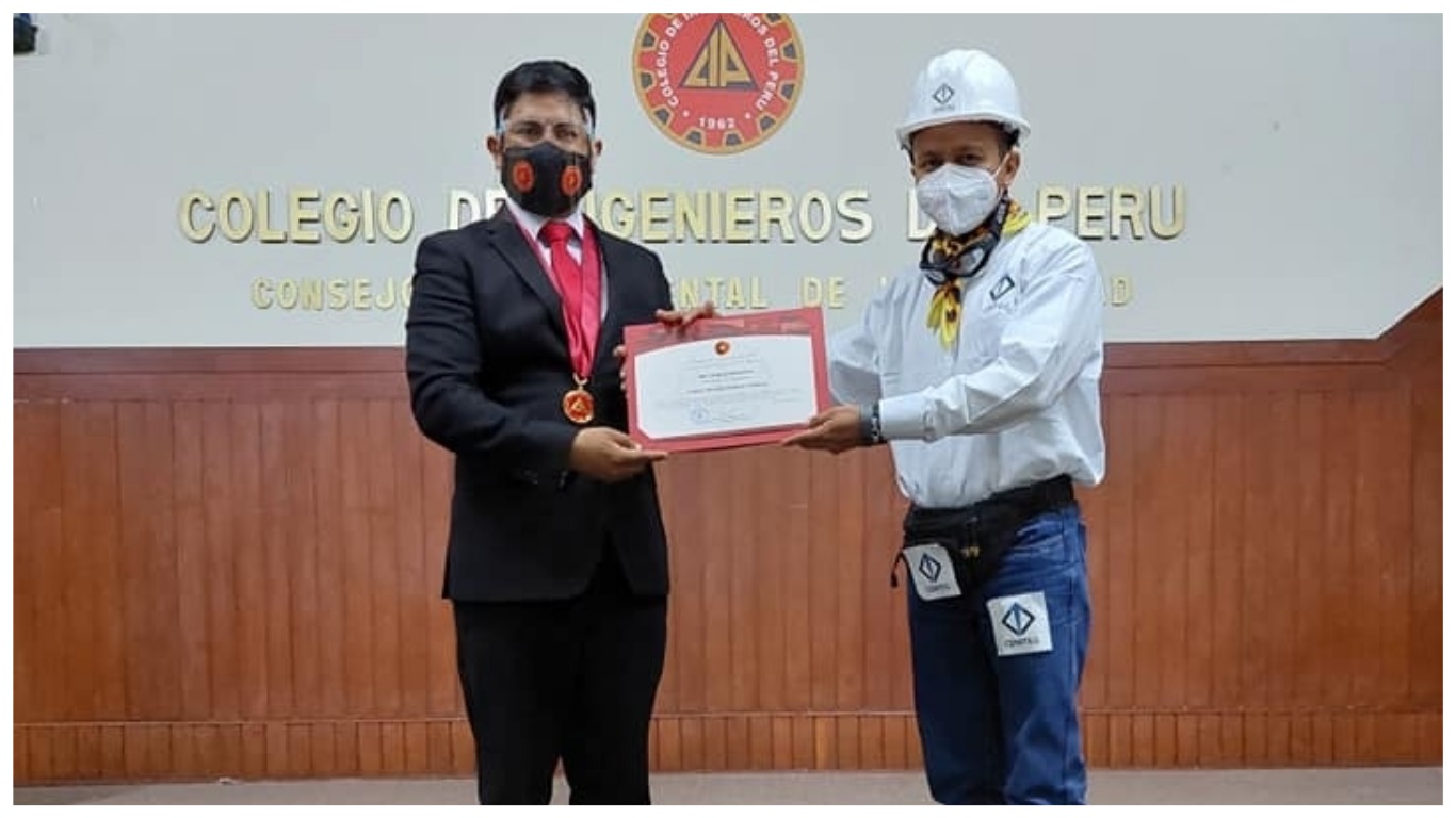 “El Colegio de Ingenieros del Perú Consejo Departamental de La Libertad y del Capítulo de Ingeniería de Minas y Geológica hace entrega del presente reconocimiento a quien ha llenado de alegría, arte y profesionalismo. Además, de velar por nuestra seguridad y salud en el trabajo, enalteciendo la ingeniería en tiempos difíciles”, se lee en la mención.