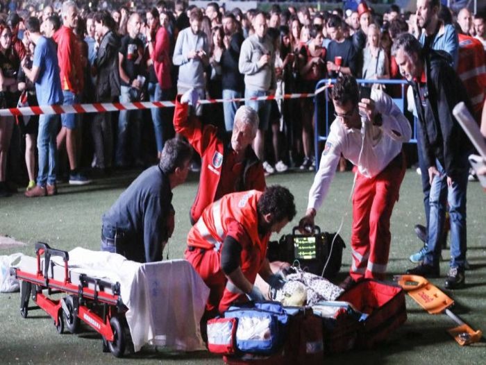 Numerosos internautas criticaron duramente esta decisión. "He visto a un hombre caerse y morir, proyectado en una pantalla gigante. Y miles de personas siguieron bailando. No tengo palabras", tuiteó uno de ellos.