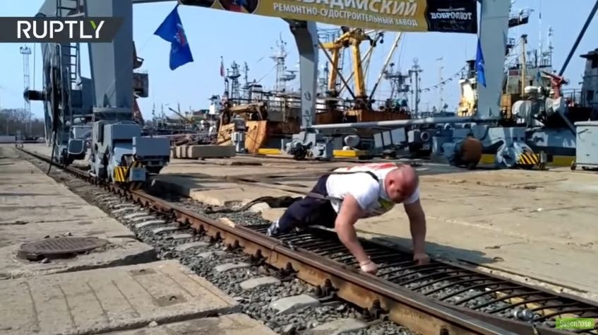 Antes ha jalado un Airbus, un ferry de pasajeros, un tren eléctrico, una locomotora diesel, un sistema de misiles de defensa aérea y una variedad de tanques. El campeón de halterofilia de Rusia dedicó este logro al tercer aniversario de la reunificación de Crimea con Rusia´.