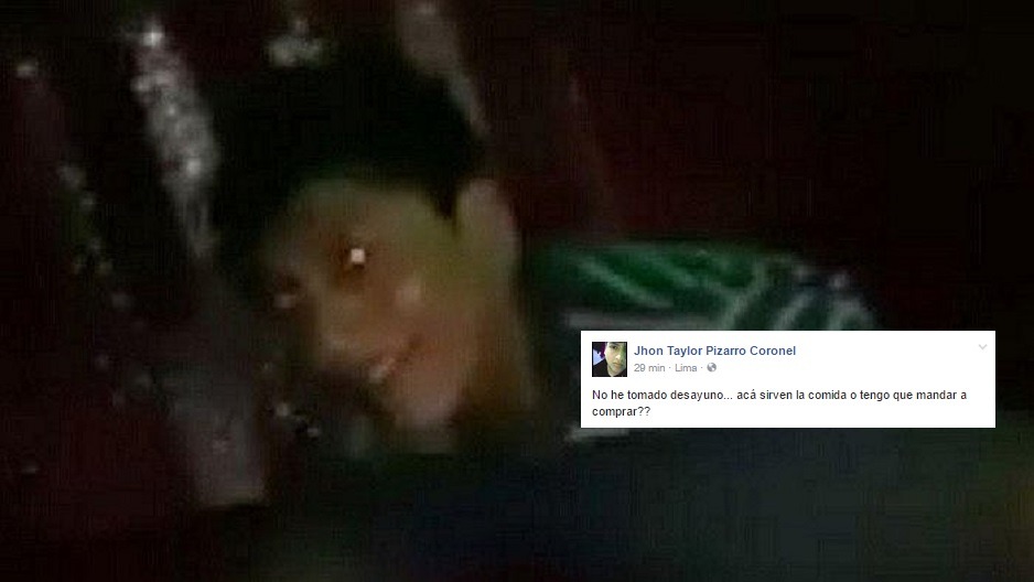 En la primera publicación de este perfil falso se lee "no he tomado desayuno... acá sirven la comida o tengo que mandar a comprar". Este comentario es una burla a la detención del joven, quien ahorita se encuentra en la DIRINCRI.