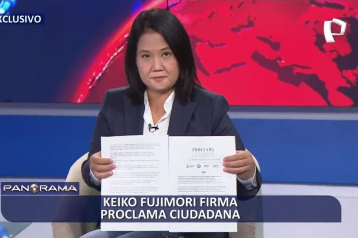 La candidata presidencial de Fuerza Popular, Keiko Fujimori, firmó en vivo durante una entrevista con Panorama, la Proclama ciudadana - Juramento por la Democracia, elaborada por diferentes instituciones con el fin de cumplir doce puntos, como defender los derechos humanos, no elaborar mecanismos de reelección y trabajar por la vacunación de toda la población. Todo esto de cara a la segunda vuelta electoral de las Elecciones Generales de Perú de 2021.