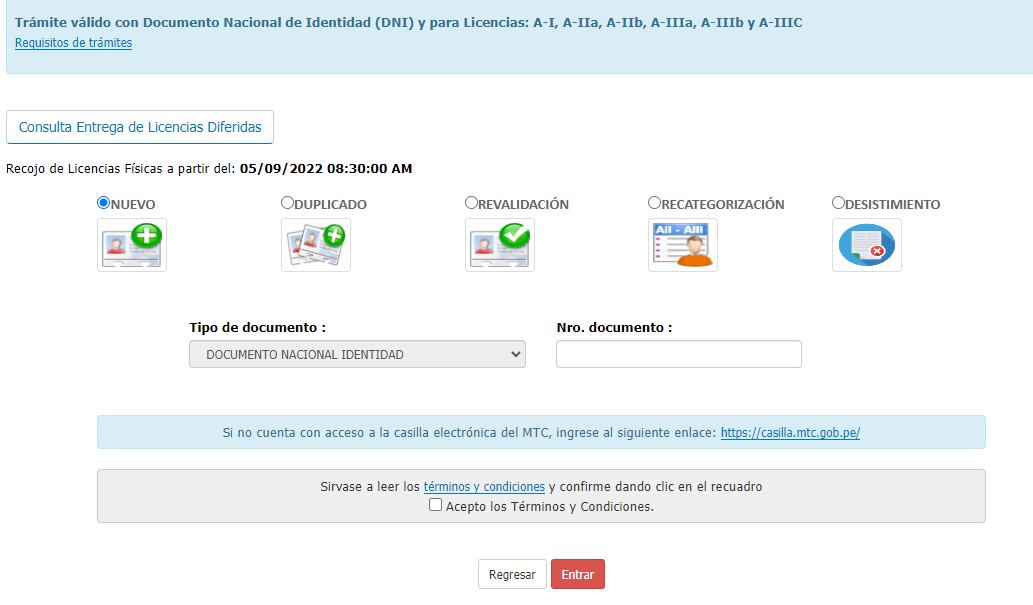 - Luego accede a la web https://licencias-tramite.mtc.gob.pe/frmAcuerdo.aspx