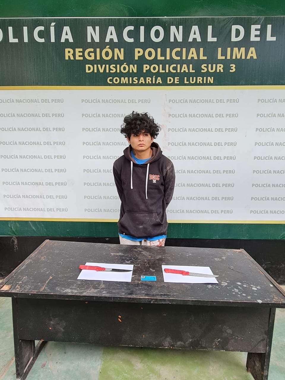 Con ayuda de agentes de la comisaría de Lurín, Zambrano fue reducido y llevado a la comisaría. En la mochila que tenía se halló otro cuchillo.