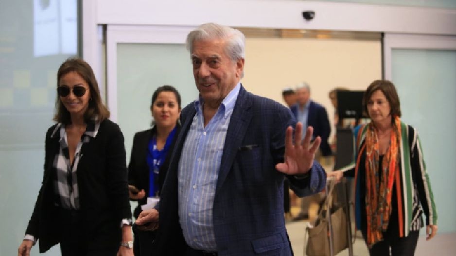La agencia Andina fue la que se encargó de reportar el arribo de Mario Vargas Llosa, cuyo onomástico es el 28 de marzo. La foto que le tomó muestra al literato relajado en el aeropuerto y escoltado por musa.