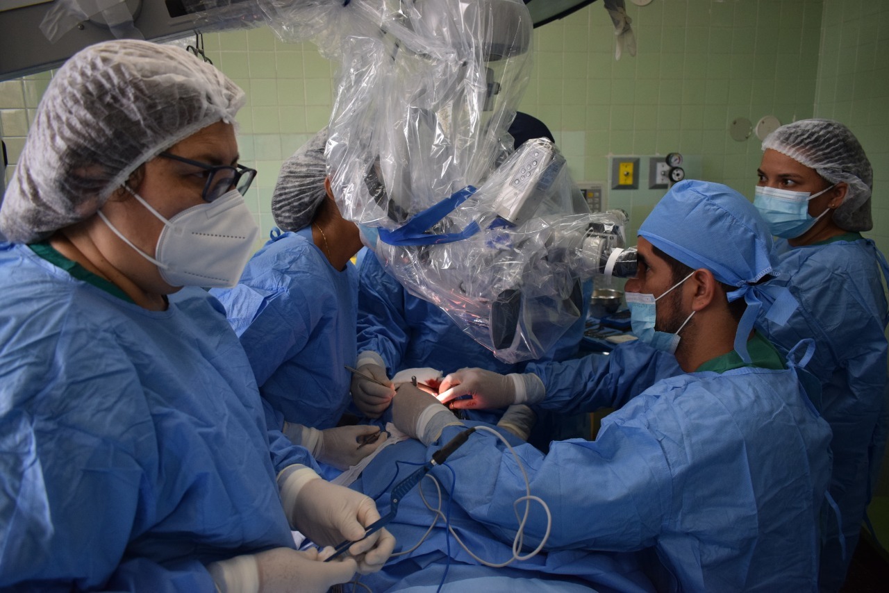 En esta cirugía compleja trabajan dos equipos. Uno que se encarga de extraer la porción de tejido sano con sus vasos, venas, arterias y el otro equipo que realiza el colgajo libre. En este último grupo el especialista hace una exploración microscópica para que pueda unir los vasos, arterias y vasos con precisión y solo se consigue con manos muy entrenadas.
