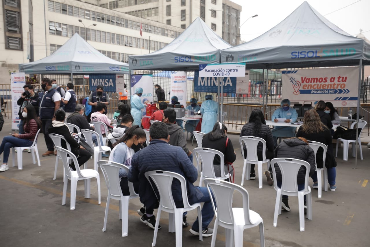 Cerca de 2.000 personas fueron inmunizadas el último fin de semana en la campaña de vacunación y descarte del coronavirus (COVID-19) que se realiza en el punto estratégico de atención instalado en el cruce de los jirones Ayacucho y Cusco, en la entrada del emporio comercial de Mesa Redonda y el Mercado Central de Cercado de Lima.