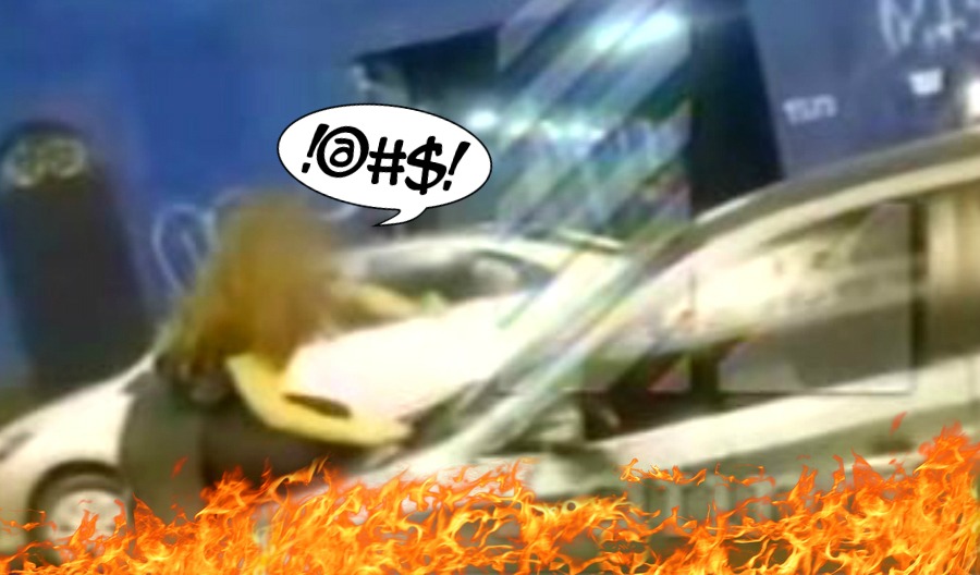 En el video se ve que la mujer se sube al auto para evitar que su esposo y su supuesta amante se escapen.