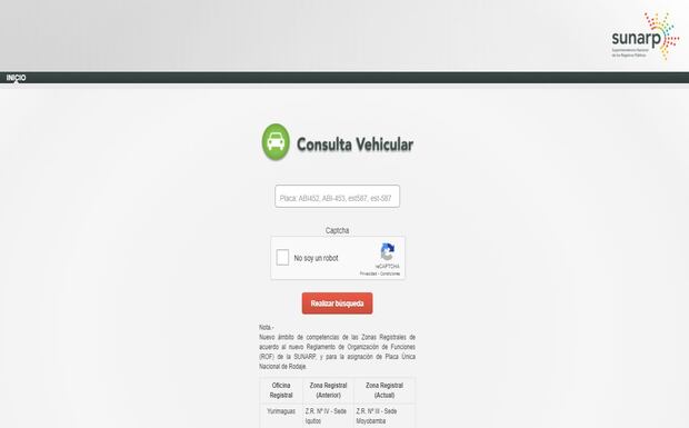 Para consultar los datos de un vehículo solo debes ingresar a este enlace de la Sunarp, “Consulta vehicular”, y colocar la placa de tu vehículo. Una vez le des clic en “Realizar búsqueda”, esta será la información de tu automóvil a la que accederás: