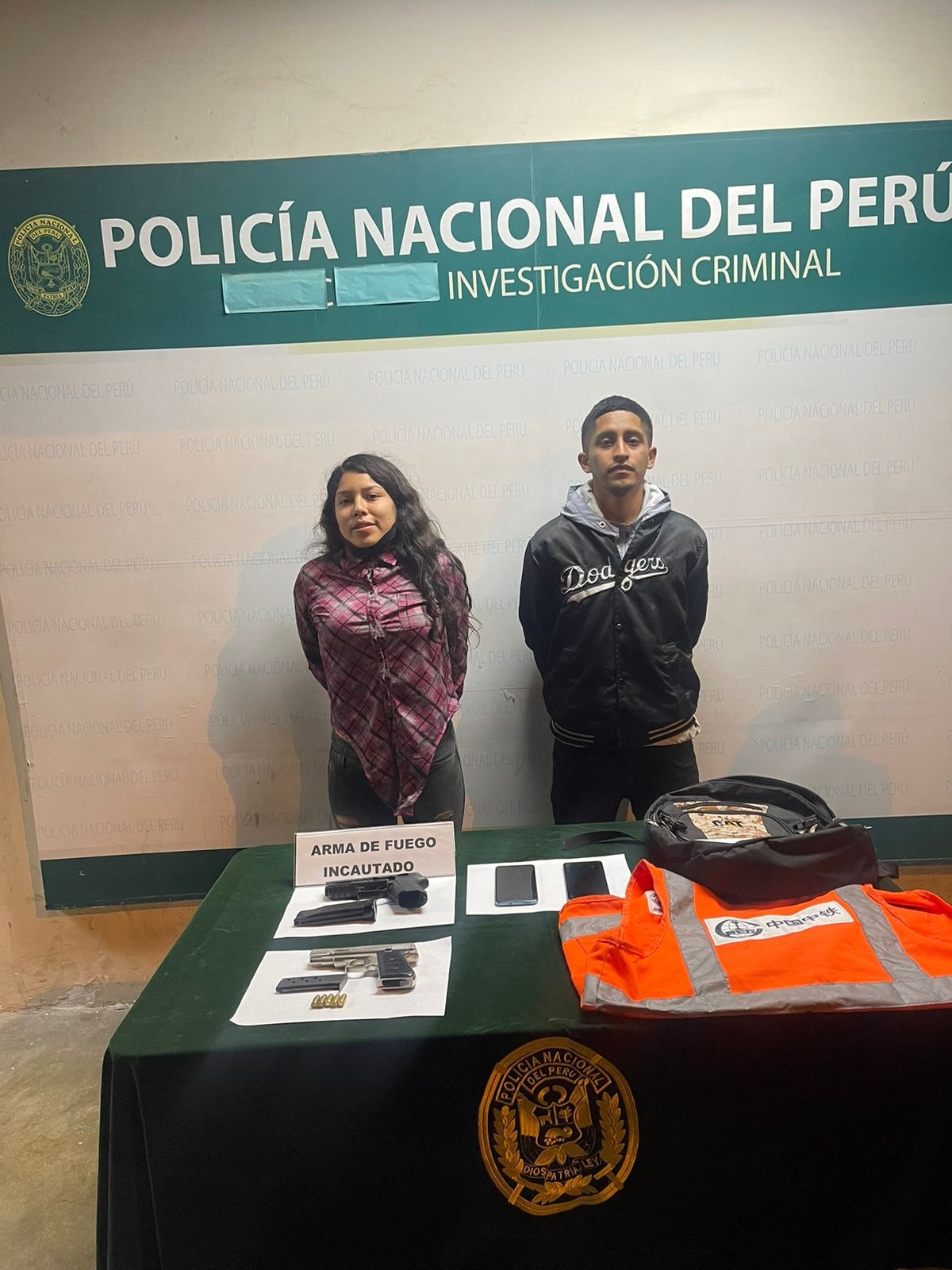 Los maleantes negaron tener intención de robar en dicho negocio, pero al registrarse la mochila que la fémina llevaba consigo, la policía halló dos pistolas y un chaleco de obrero.