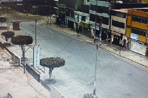 La agencia de noticias Andina difundió las imágenes captadas por las cámaras de seguridad de la Municipalidad Provincial del Santa, donde se evidenció el nulo tránsito peatonal.