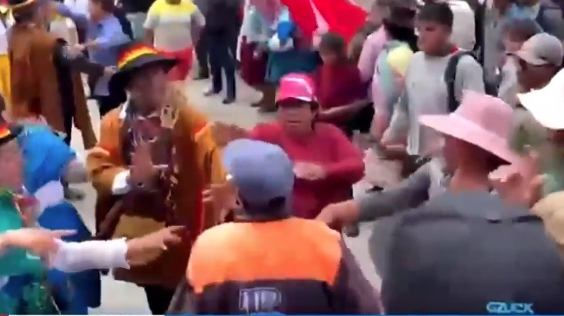 Distintos integrantes de las comparsas del carnaval andahuaylino se enfrentaron a integrantes de la Junta de Regantes de Andahuaylas porque no les permitieron el paso durante su pasacalles a la plaza de Armas de la mencionada ciudad.