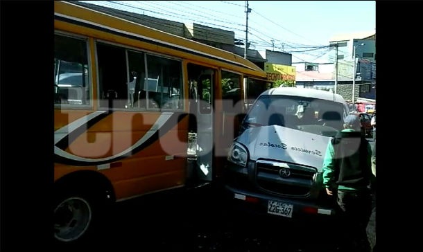 Doce personas, entre ellos nueve escolares, resultaron heridas en el choque entre una cúster de transporte público y una movilidad escolar, la mañana de ayer, en la avenida Independencia, a la altura del parque César Vallejo, en el Cercado de Arequipa.