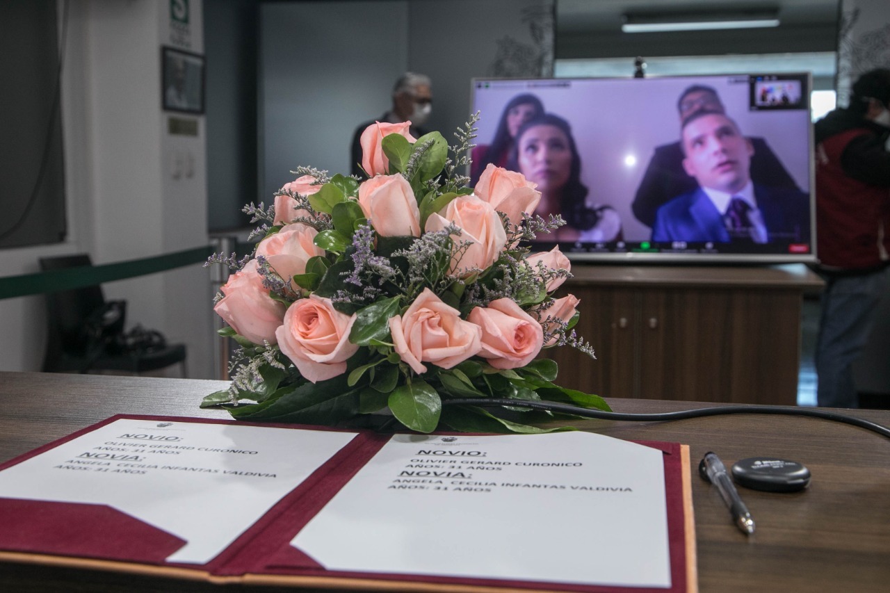 El evento se llevó a cabo este jueves 11 de junio desde las 11:00 a.m. a través de la plataforma Zoom con la finalidad de permitir que los familiares, testigos e invitados de Angela Cecilia Infantas Valdivia y Oliver Gerard Curonico, puedan ser parte de la boda virtual.