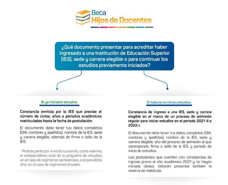 - Constancia de ingreso a una institución de educación superior (IES), sede y carrera elegible, para iniciar clases en el 2021-II o 2022-I.