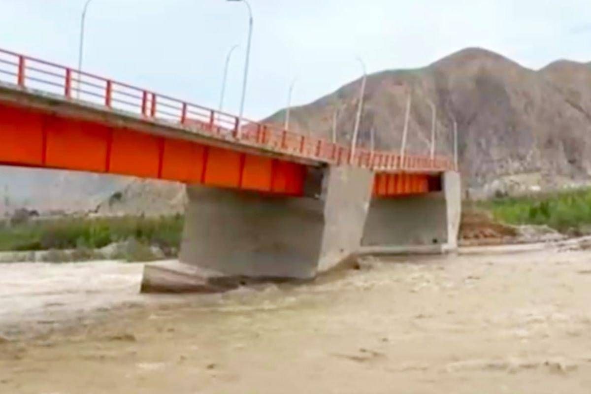 Vecinos de Cañete compartieron imágenes de como uno de los pilares se encuentra inclinado y a punto de desplomarse, a consecuencia del aumento del caudal de este río.
