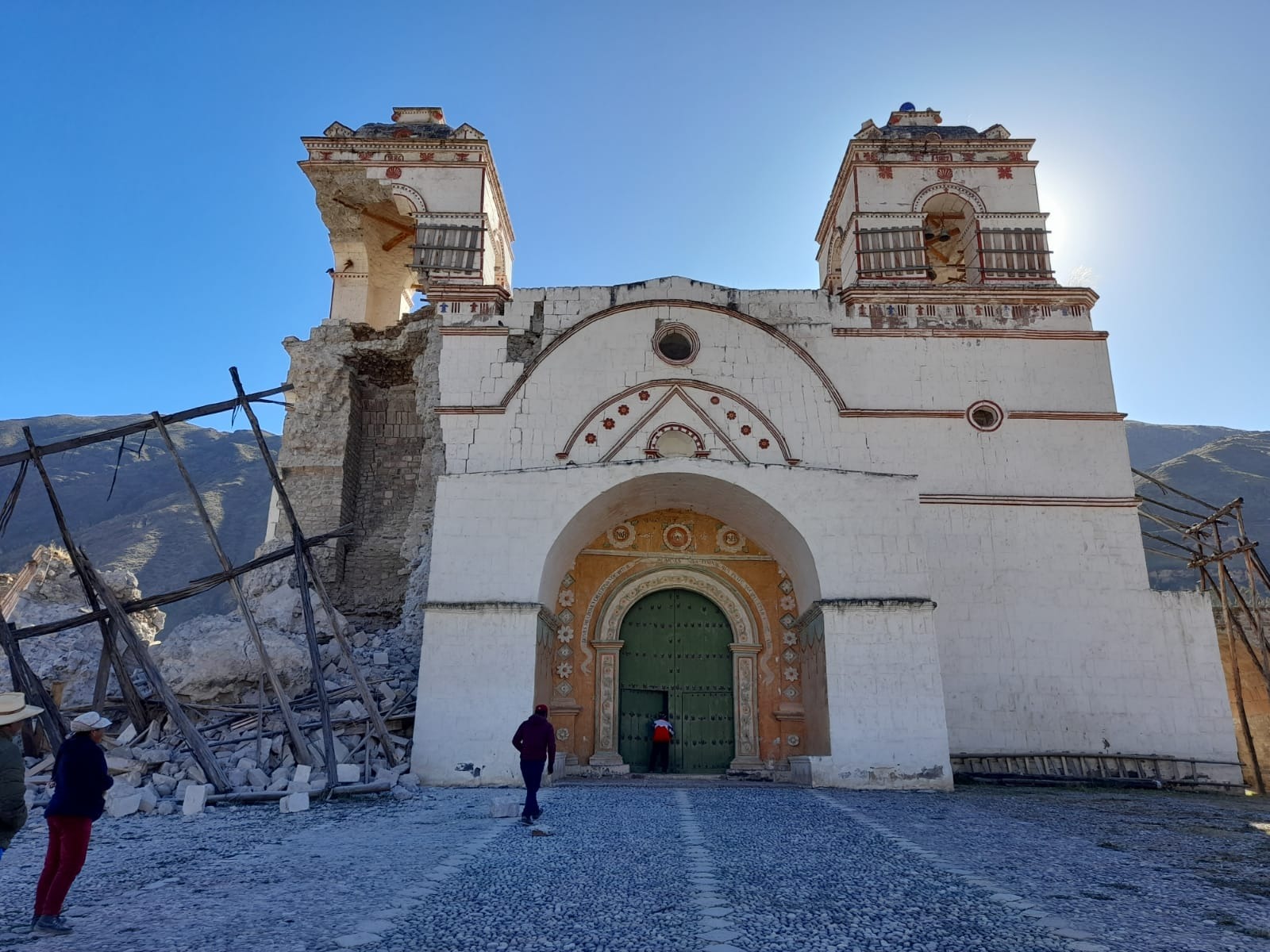 Aunque no se reportaron víctimas que lamentar en Caylloma, la torre de la iglesia Purísima Concepción del distrito de Lari se vino abajo, provocando gran preocupación en la zona.
