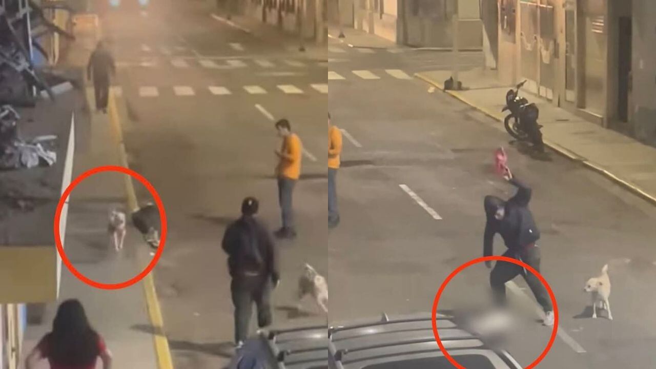 Una cámara de seguridad captó el momento exacto del crimen. En las imágenes se observa cómo el sujeto ataca al animal, y luego intenta agredir con un cuchillo a un joven que intentó intervenir. Los vecinos, indignados, reaccionaron arrojando piedras contra su vivienda.