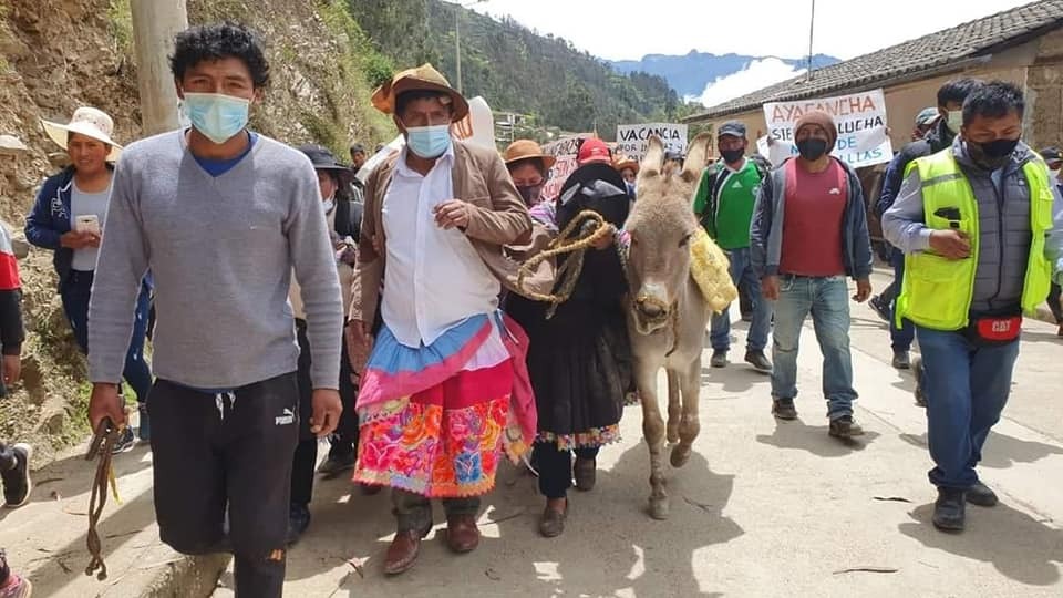 Sin embargo, minutos después el alcalde fue rodeado por decenas de personas y estas le colocaron una pollera como castigo. Acto seguido, forcejearon con él para hacerlo subir a un burro y pasearlo por todo el distrito.