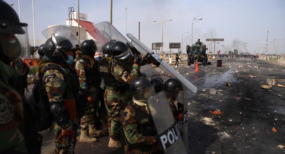 Luego que el Congreso de la República no llegara a un acuerdo respecto a los proyectos de ley que proponen un nuevo régimen laboral agrario, nuevos enfrentamientos entre manifestantes y efectivos de la Policía Nacional se vienen reportando a la altura del kilómetro 272 de la Panamericana Sur, en el sector Barrio Chino, distrito de Salas (Ica), luego que los trabajadores agrarios bloquearon con piedras eses tramo de la vía nacional.